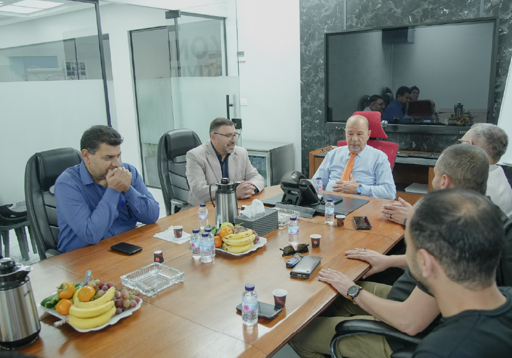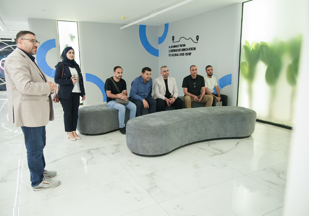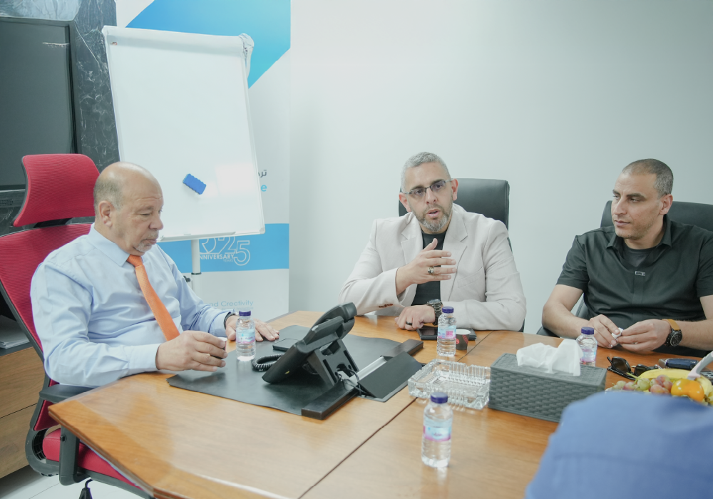 Public Relations – Haj Mazen Zughir, Vice Chairman of the Board of Royal Industrial & Trading Company, received a delegation from the Palestinian National Center for Occupational Safety, Health, and Environmental Protection at Palestine Polytechnic University, represented by Dr. Mahmoud Nassar, Director of the Center, Eng. Ali Al-Darawish, and Ms. Sondos Al-Talbeeshi, along with a representative of the Palestinian Civil Defense, Brig. Eng. Tareq Khamaiseh, Director of Operations.